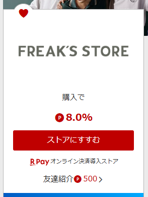 フリークスストアでは楽天ペイ決済にも対応。
