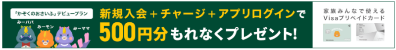 「かぞくのおさいふ」は、親子で使えるプリペイドカードサービス。