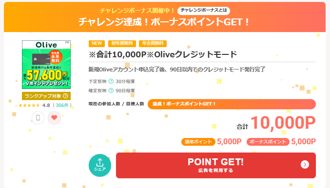 - 登録後は1つの案件で 7,000pt以上獲得できる