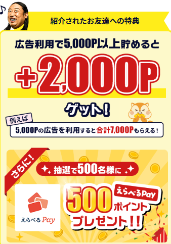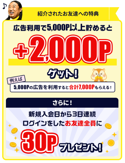 | 5,000pt以上の広告利用 | +2,000pt | 期間限定キャンペーン |