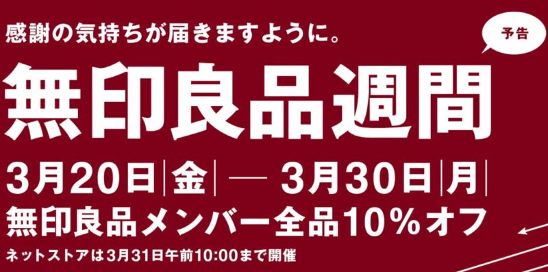 「マルコとマルオの10日間」×「無印良品週間」が重なると、10%+10%で超お得!