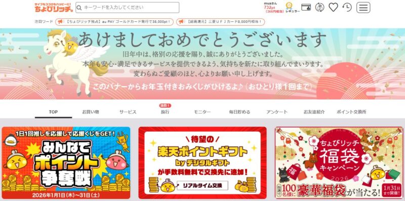 - ちょびリッチ:獲得ポイントに+15%還元(プラチナ会員)