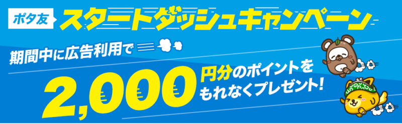 - スタートダッシュキャンペーン:2,000円分